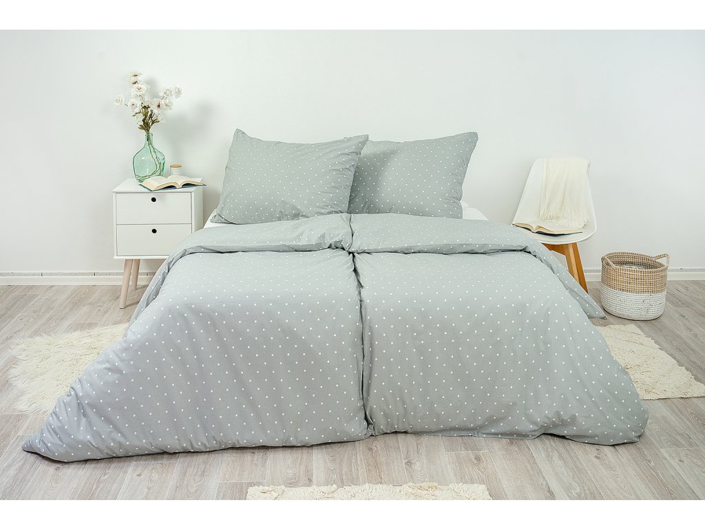 Hravý drobný puntíkový vzor v šedé barvě bude díky své jednoduché eleganci ozdobou každé ložnice.