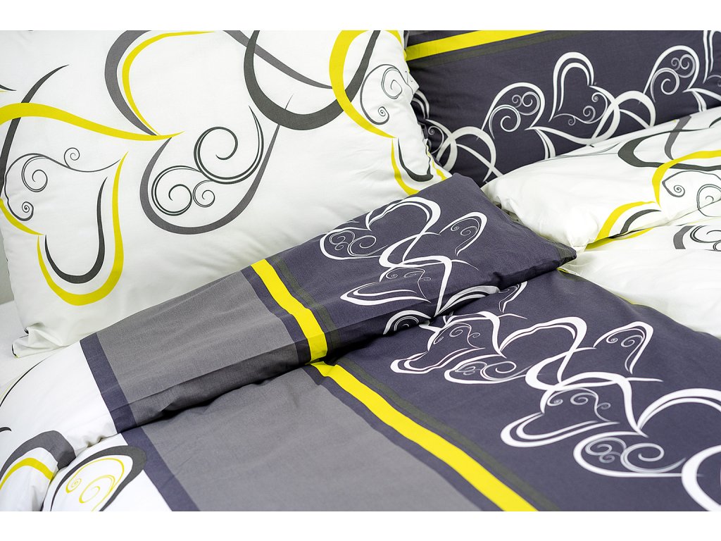 Tento dezén povlečení vnese do Vaší ložnice závan čisté elegance. Povlečení kombinuje šedou, bílou a zelenou spolu se vzorem srdcí. Povlaky na polštáře 90x70 a na malé polštářky 40x40 cm jsou šité z metráže, díky rozmanitosti vzoru je každý jiný.