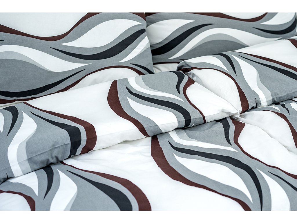 Máte svojí ložnici jednoduše zařízenou? Udělejte z postele její výrazný prvek s pomocí ložního povlečení. Bavlněné povlečení s motivem vlny, kombinuje bílou, černou, šedou a hnědou barvu. Vaše ložnice dostane nový nádech.