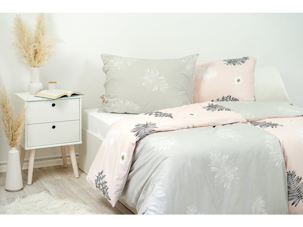 Povlečení kapradí růžovo-šedé se stane stylovým doplňkem vaší ložnice. Jemné pudrové odstíny růžové a šedé se vzorem kapradí tvoří půvabný vzor. Povlaky na polštáře 90x70 cm a malé polštářky 40x40 cm jsou šité z metráže, díky rozmanitosti vzoru je každý jiný.