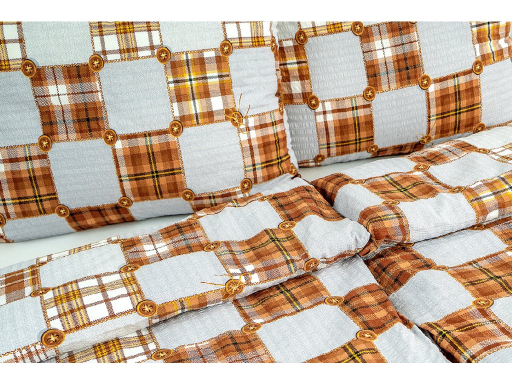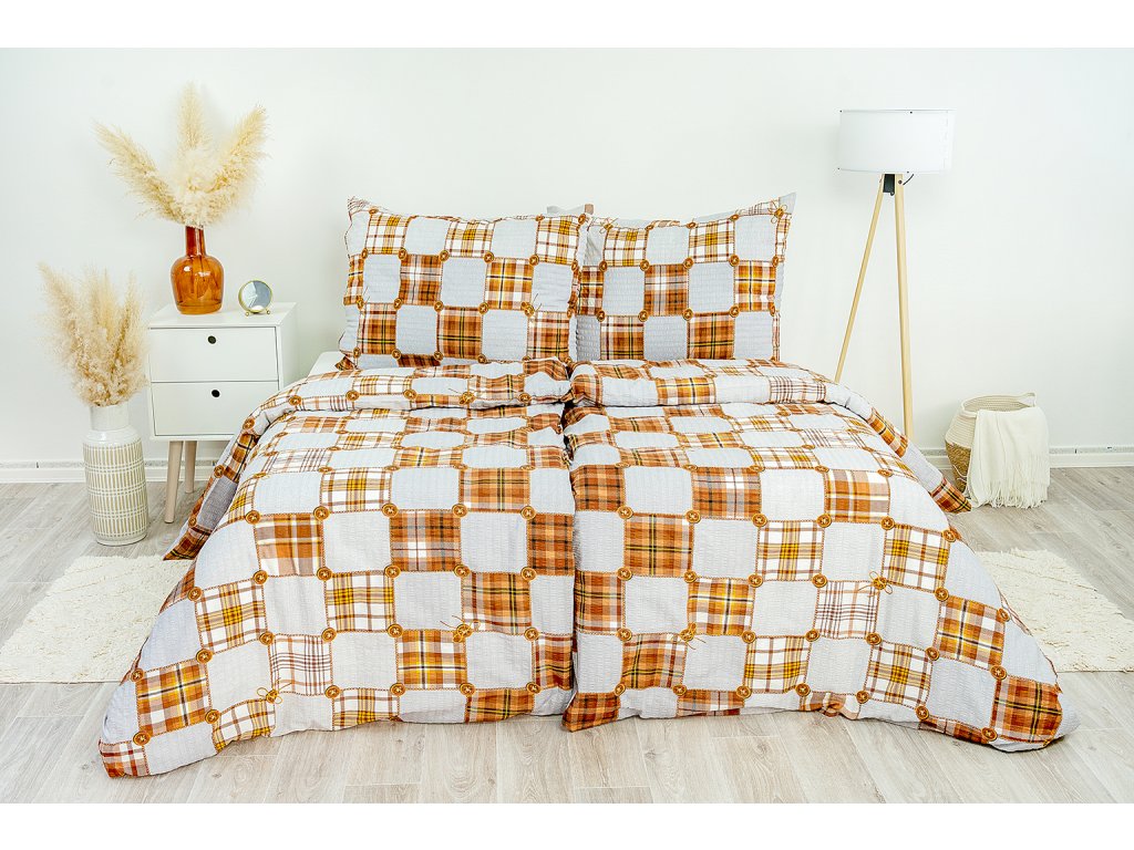 Máte rádi venkovský styl a vaše ložnice je převážně ze dřeva? Povlečte svou postel do krepového povlečení, které vypadá jako ze záplat s knoflíky. Povlečení je z krepu, odpadá vám tak nutnost žehlení.