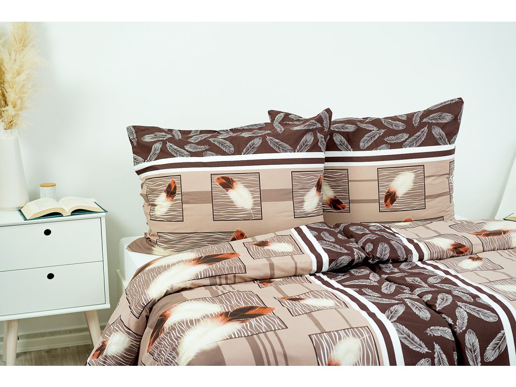 Nadčasový vzor, se kterým bude Vaše ložnice zcela originální. Vzor peříček v odstínech hnědé barvy se stane ozdobou každého moderního interiéru. Povlaky na polštáře 90x70 cm a malé polštářky 40x40 cm jsou šité z metráže, kvůli rozmanitosti vzoru je každý jiný.