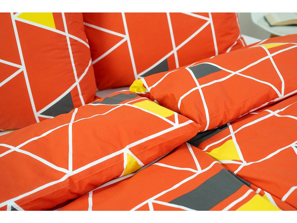Krepové povlečení pyramidy červené Vás zaujme na první pohled jednoduchým zpracováním a nápaditou kombinací barev. Povlaky na polštáře 90x70 cm a polštářky 40x40 cm jsou šité z metráže, díky rozmanitosti vzoru je každý jiný.
