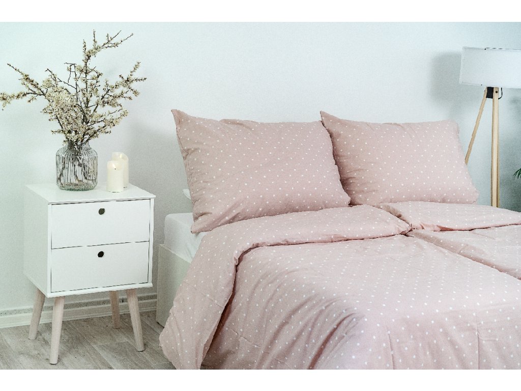 Hravý drobný puntíkový vzor v růžové barvě bude díky své jednoduché eleganci ozdobou každé ložnice.